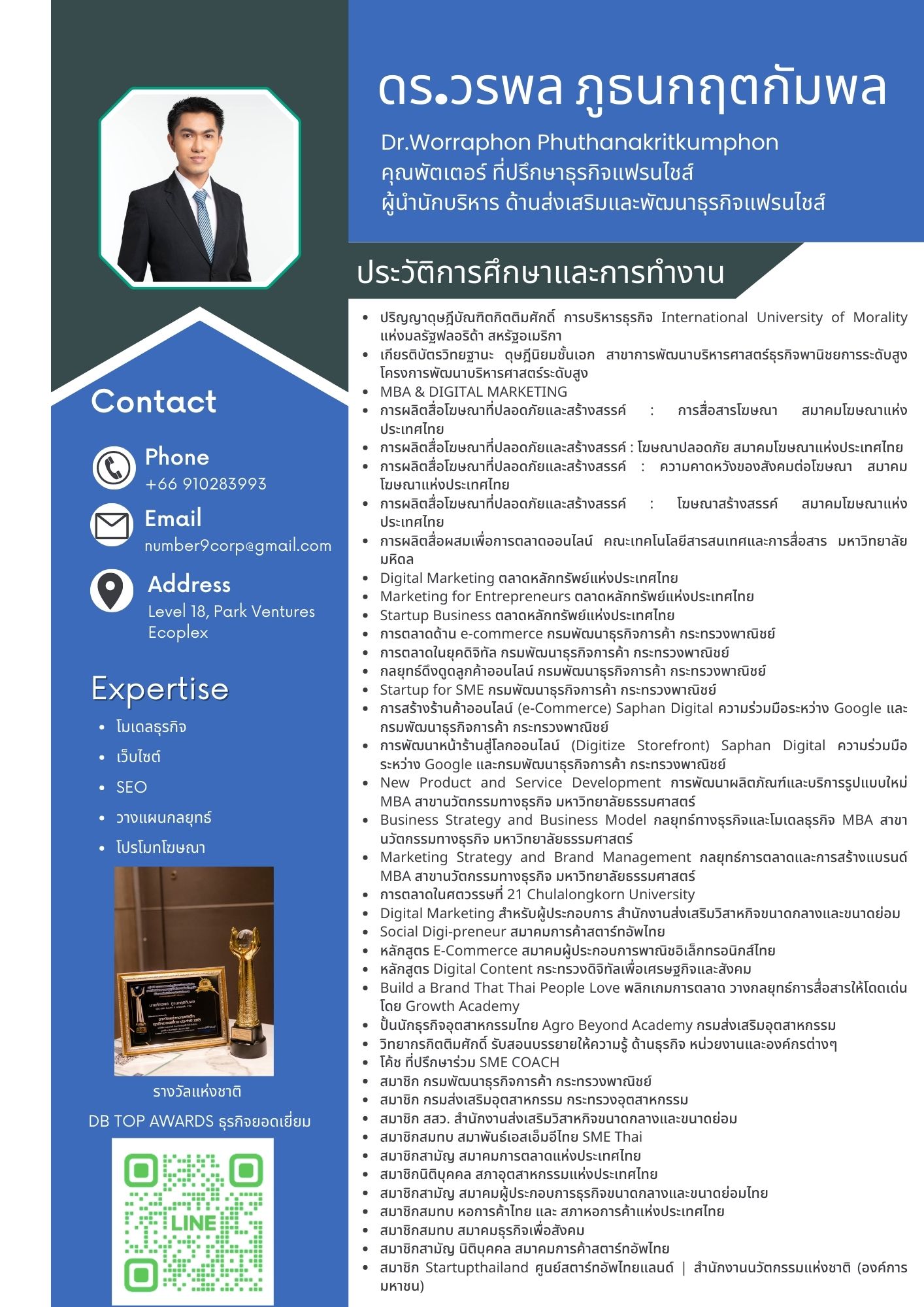 ดร.วรพล ภูธนกฤตกัมพล ประธานกรรมการบริหาร บริษัท นัมเบอร์ 9 คอร์ปอเรชั่น จำกัด